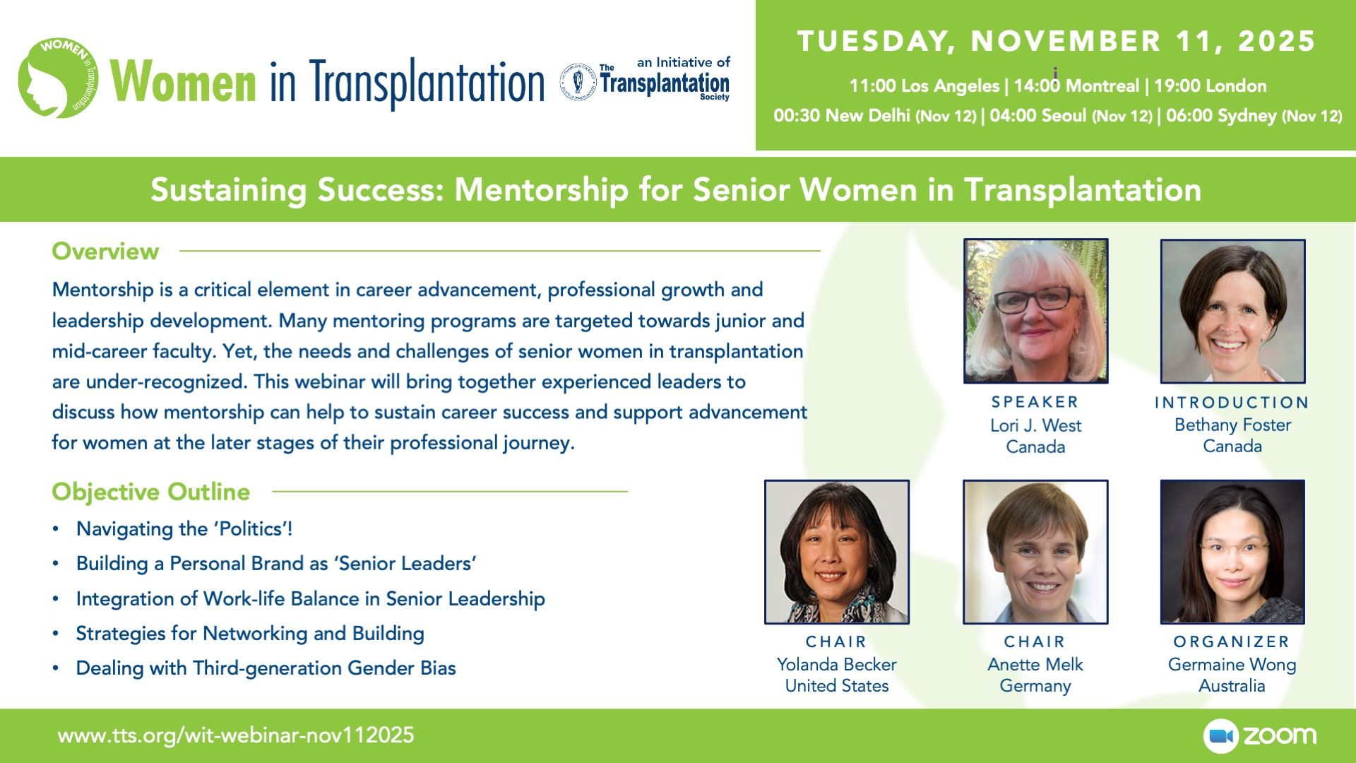 WIT is proud to feature individuals who contribute to WIT’s mission of: (1) Advancing and inspiring women transplant professionals (Pillar 1), (2) Championing issues of sex and gender in transplantation (Pillar 2), and (3) Advocacy to address sex and gender-related disparities in transplantation (Pillar 3). Learn more about clinicians, researchers, and patients who shed light on disparities and try to overcome them to improve patient outcomes.